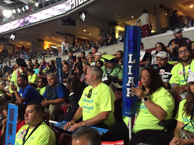 dEMOCRATS CHANGE SIGNS FROM “HILLARY” TO “LIAR” DURING DNC